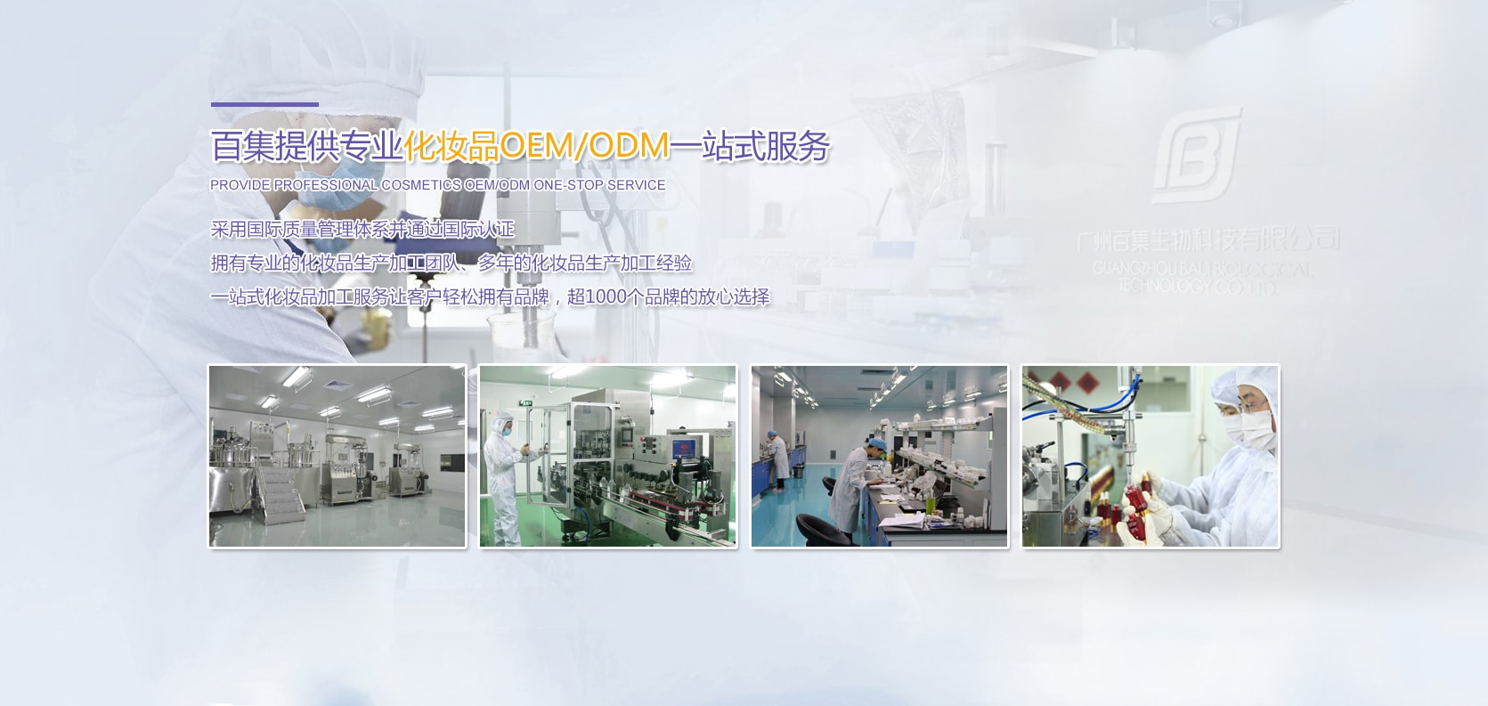 廣州市百集生物科技有限公司成立于2012年,坐落在亞洲化妝品硅谷的廣州市白云區(qū),是一家具有現(xiàn)代化管理、專業(yè)化水準(zhǔn)的化妝品研發(fā)及制造基地,為客戶提供專業(yè)的OEM/ODM一站式服務(wù),涵蓋產(chǎn)品規(guī)劃、配方開(kāi)發(fā)、包裝設(shè)計(jì)、功效測(cè)試、乳化、灌裝、包裝、倉(cāng)儲(chǔ)物流等全方位服務(wù)。產(chǎn)品涵蓋各類化妝品水、乳、霜、膏、面膜、精華、BB霜、CC霜、素顏霜、精油及粉類等成品及半成品,涵蓋日化線及專業(yè)線配方。公司秉承“創(chuàng)新、共贏”的核心價(jià)值觀......